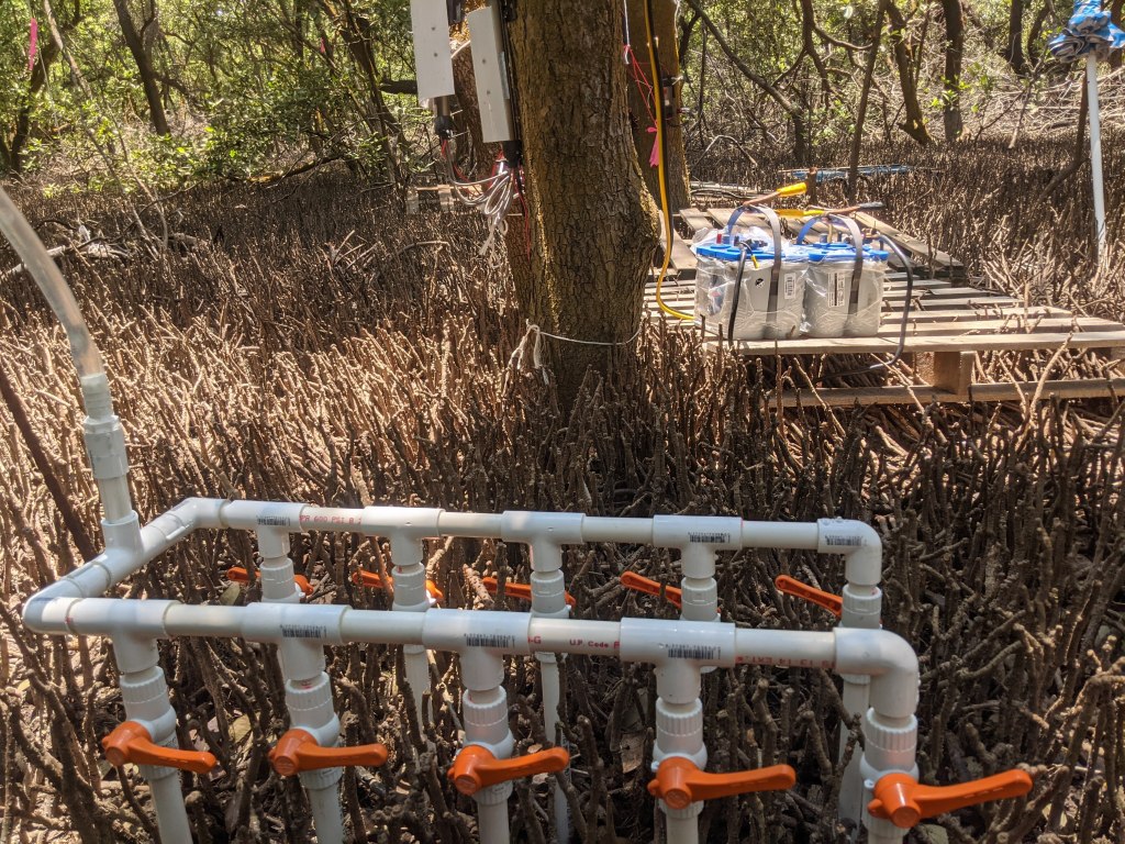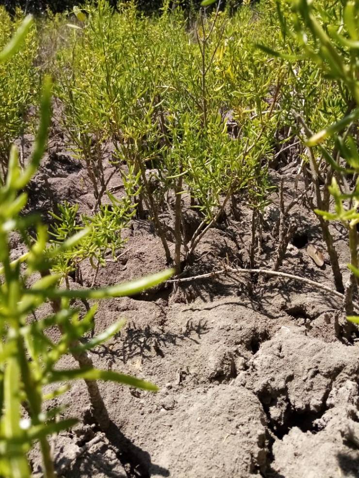 The water table was well below 75 cm below the soil surface, and it stayed like that until the next full moon, when spring tides and rain upland managed to bring some water into the dry sediments.