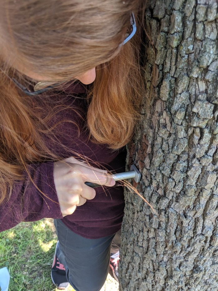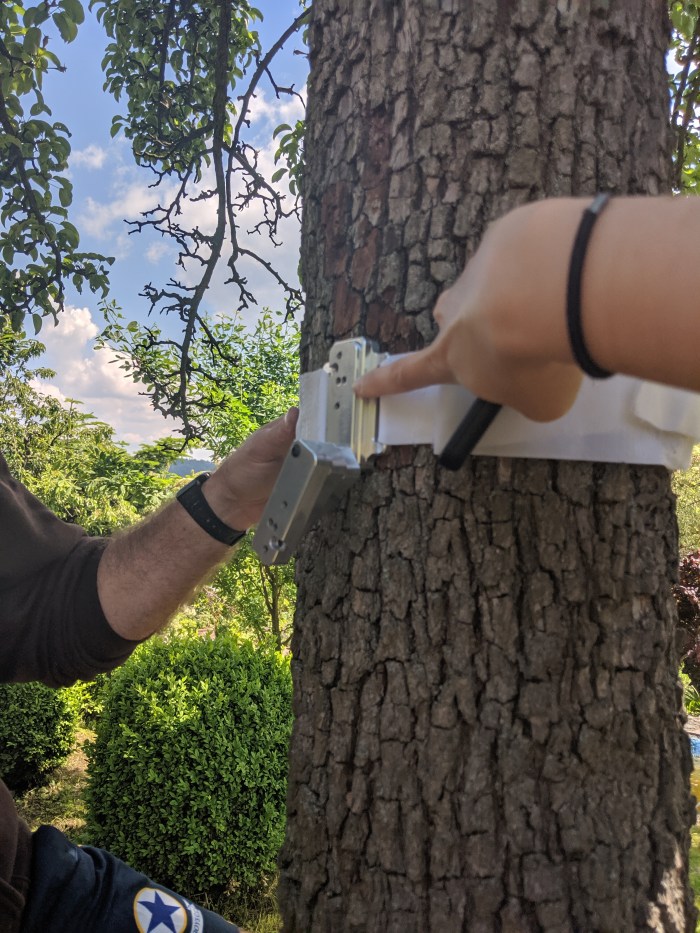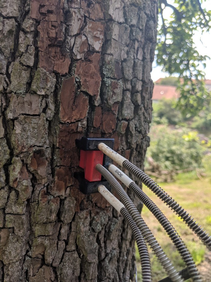 Alec, Jorge, Nadezhda and GuillermoHFD Sap flow sensorsGuides to place the sensor Preparing the stem One heater and three thermocouples ready Measuring bark depthTime to tree talk